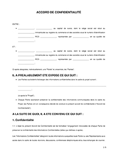 Accord de confidentialité - Lettre de confidentialité - NDA