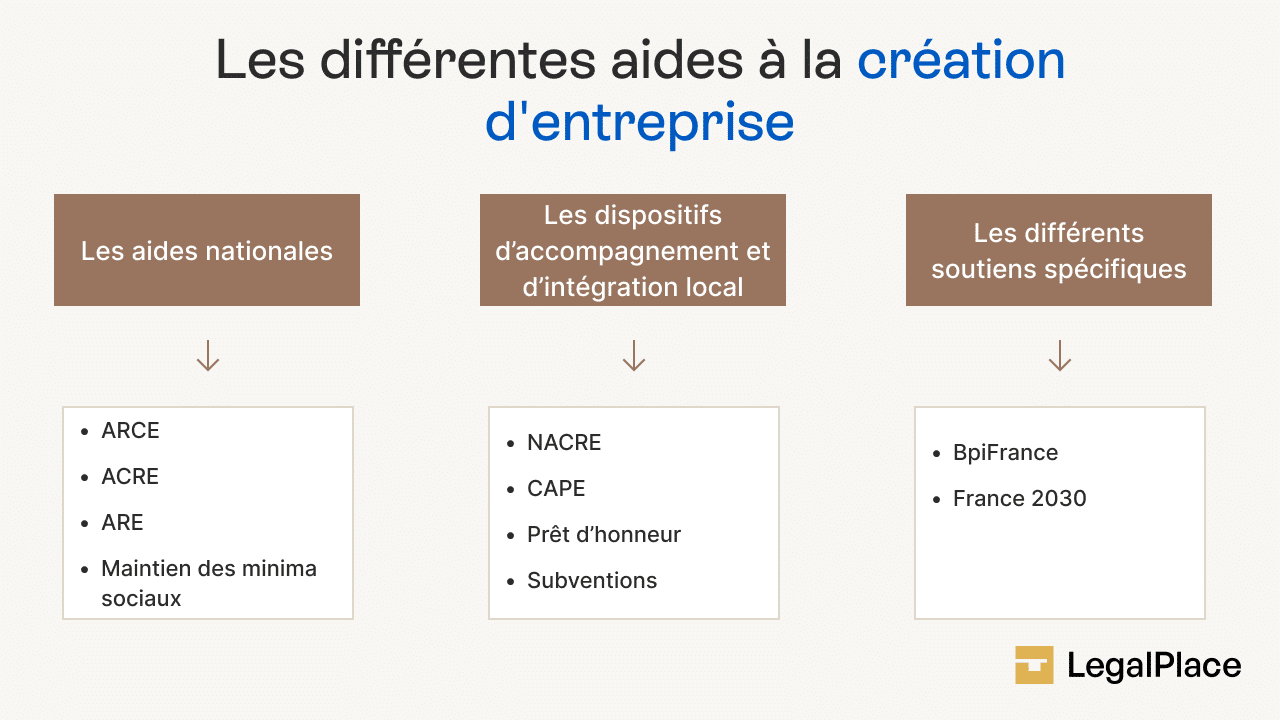 Voici un schéma récapitulatif des différentes aides à la création d’entreprise :