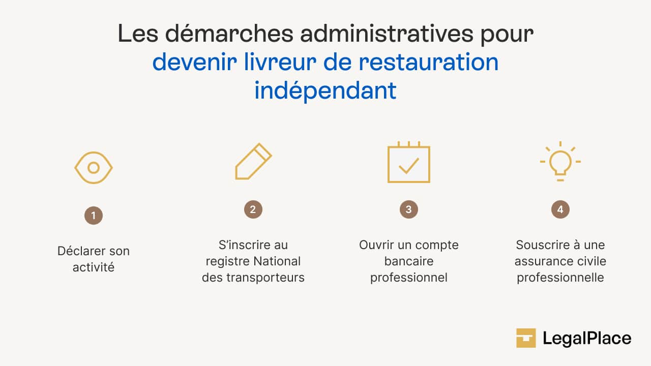 Voici un schéma sur les démarches administratives pour devenir livreur de restaurant indépendant :