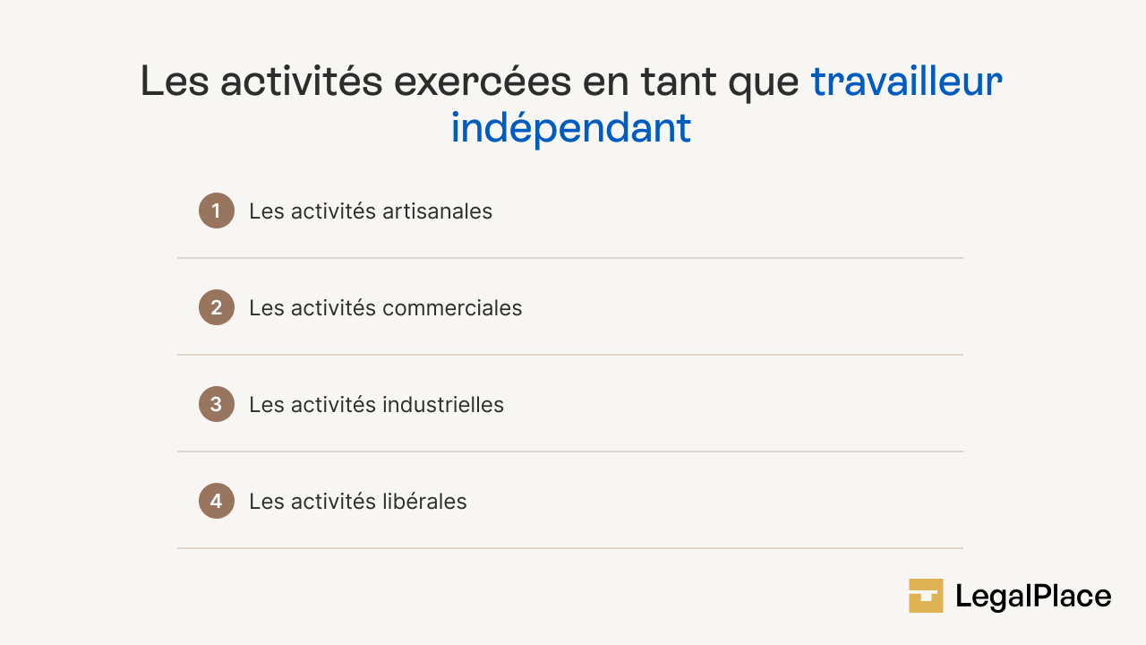 - Quelles sont les activités exercées en tant que travailleur indépendant ?